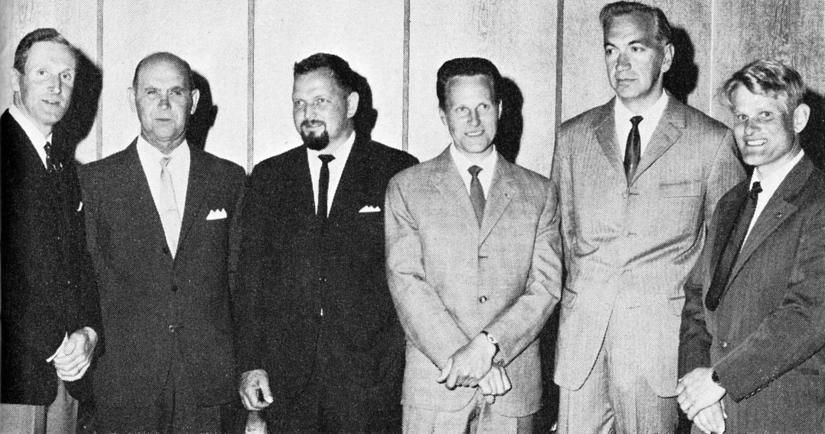 En rad svenska mästare med Irve längst t.h. vid avslutningen av SM i segelflyg 1966. |