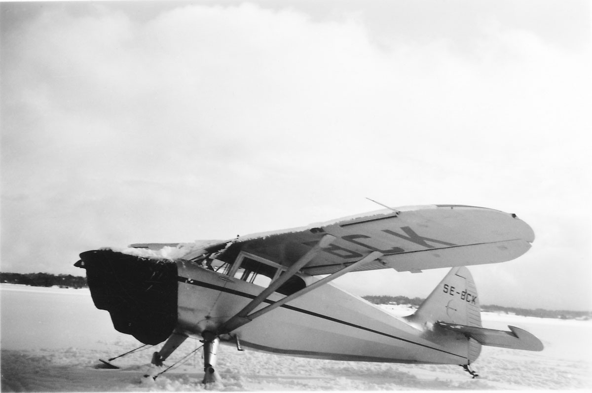 Gunnar Eriksson hade troligen störst kapital och var mest affärssinnad. Han var en knalle-typ men också en god mekaniker. Han var född 1912 och hade varit med i Hamiltons legendariska flygskola på Hammars backar utanför Ystad. Han var anställd på Televerket i Borås. Bertil Asklöf var lång och ljus, minns jag. Stinson SE-BCK havererade två gånger pga bensinbrist – en gång under Aero-Frabhs ägartid med Figge Bergman vid spakarna och sedan en gång i Tranemo med Arne Tengler i Aerobolaget. Efter det ville Arne inte flyga Stinson längre. Han tappade förtroendet för maskinen, så jag fick flyga den medan Arne flög Austern. Mitt flygande för Aerobolaget den gången var nog bara ett fritidsjobb under några veckor. Bensinbristproblemet med Stinson berodde på att om det var lite bensin i den inkopplade tanken, gjorde planets vinkel vid stigning att den inte rann till. När motorn plötsligt sviktar är det lätt att få panik och inte omedelbart göra som man ska – skjuta fram spaken och sikta på det billigaste hindret. Vid haveriet i Tranemo bräcktes en stötta. Den fick svetsas. Reparationen kan mycket väl ha tagit lång tid, kanske ett halvår. Det var mest på vintrarna man flög. Då fanns alla sjöisar att landa på. Sommarrundflygningar i Varberg hade Aerobolaget inte börjat med vid denna tid. Stinson SE-BCK var nog gråmålad med blå blixt redan när Aerobolaget köpte den, eller också målade Gunnar Eriksson den tidigt. |