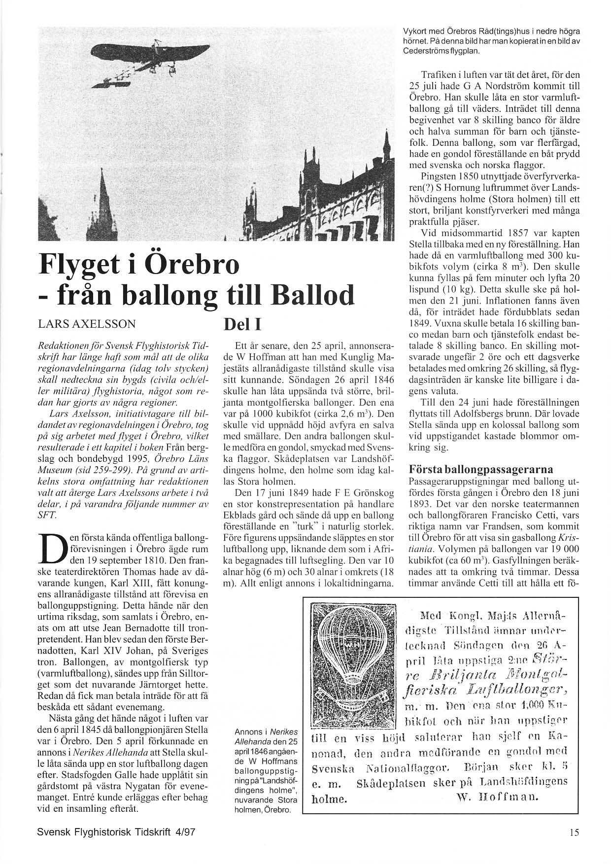 | 1997 | Det ges ut i två delar i Svensk Flyghistorisk Tidskrift. |