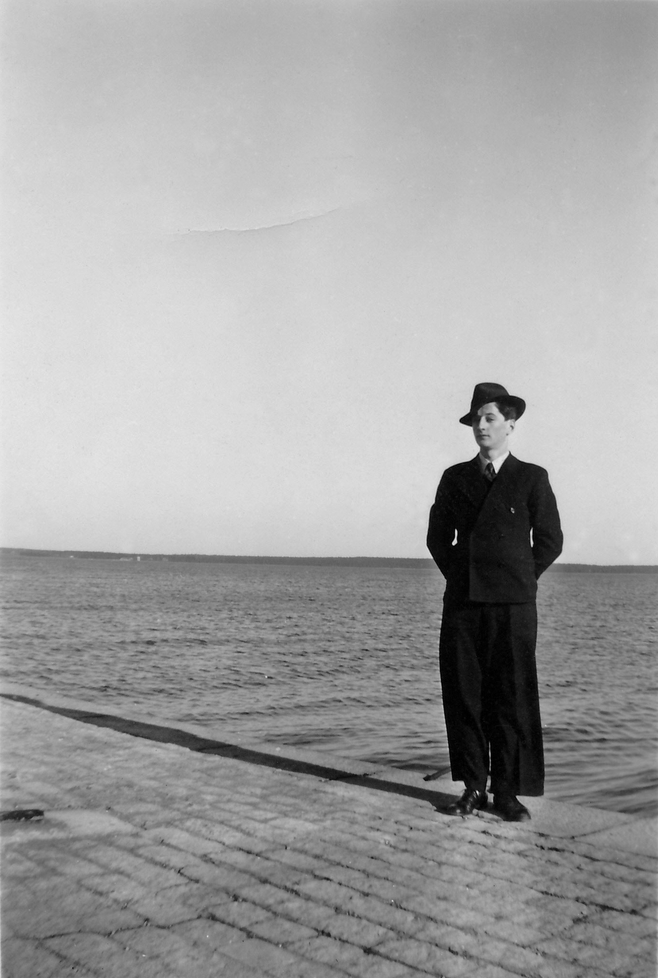 [A32] Kurt Bjärestig vid en kajkant, kanske 1944. Var? Foto via Kurt Bjärestig