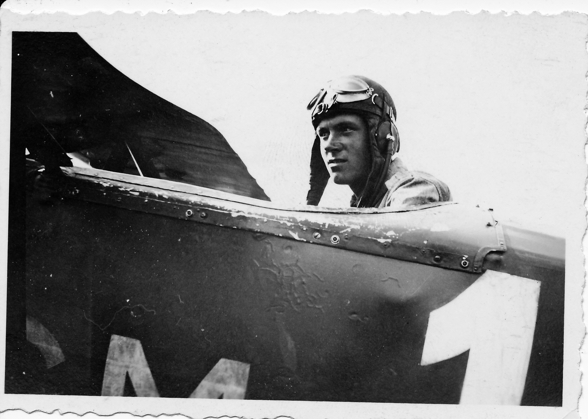 Var Kollin en känd pilot? Vad betyder "K:va 43"? Är planet svenskt? Sitter piloten i en gammal Fokker CVE?