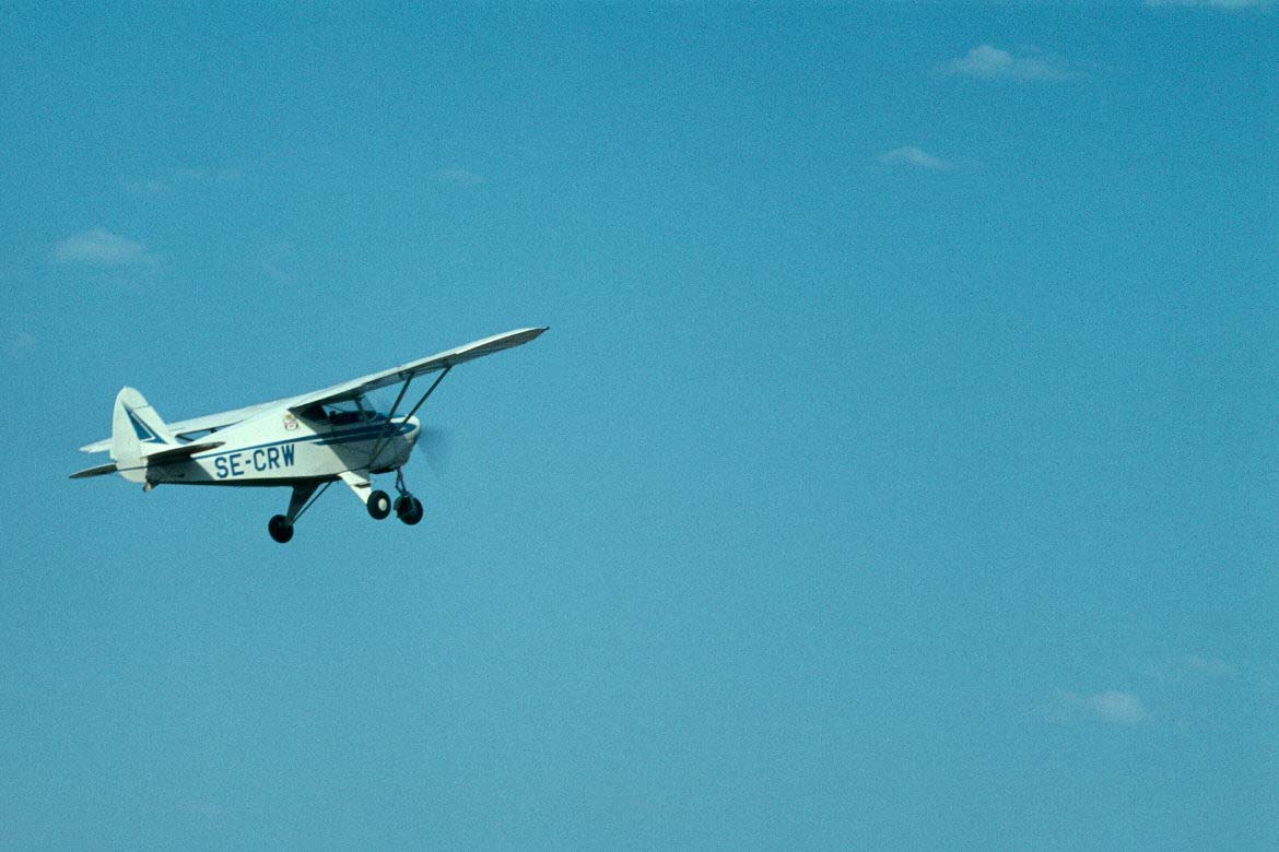 När Mothen SE-COL blev vrak i Örebro, del 2Kalle improviserarMotorflygchefen Karl-Gunnar Carlsson var en kort och kraftig medelålders herre som alltid hade vit skjorta och mörka, pressade byxor. Var det kallt, bar han fin rock och hatt. Men han hade glimten i ögat och hälsade alltid glatt på mig med ett eftertryckligt "Tjeena'!". Alla kallade honom för Kalle. Det var han som var den förste att visa mig hur Örebro såg ut från ovan genom en Cessnas vindruta, och att låta mig spaka själv. Alla förstår nog hur en nioårig grabb känner sig resten av dan efter en sådan upplevelse. En gång minns jag att Kalle löste bogserproblemet på ett okonventionellt sätt. Cessnan SE-EAC hade ingen bogserkrok. Bakkroppen var inte heller konstruerad för de belastningar som bogsering medför. Men Kalle tog en gammal bogserlina, surrade den ordentligt i ena huvudlandningsstället, drog den bakåt längs flygplanskroppen och genom förankringsringen i stjärten där linan gjorde en ögla och sedan gick tillbaka samma väg, fast nu till det andra huvudlandningsstället. I linöglan där bak fäste han sedan den ordinarie bogserlinan. Kalle, som aldrig annars sågs bogsera segelflyg, tog ansvaret för denna improvisation och bogserade hela tiden. Cessnan verkade ganska obekymrad om sin extra börda. Det gick inte att fälla linan, utan Kalle fick landa ändå, med linan hängande efter som en 50 meter lång svans, redo att trassla in sig i allt som kunde komma i dess väg. Han fick landa långt in på fältet med stora marginaler till staket och fältgränsmarkörer och göra vida lovar när han skulle vända för att taxa tillbaka till märket. Fler tillfälliga lösningarPå vårvintern 1964 stod Mothen plötsligt inte kvar i hangaren längre. Den hade blivit relegerad, isärtagen och stuvad längst bak i ett garage för släpkärror som användes till att hämta hem utelandande segelflygplan. Där längst bak i garaget hade det förr legat en kropp till ett gammalt segelflygplan, jag tror det hette SE-SAR och det kan ha varit en Grunau Baby. Men nu var det borta och istället hade Mothen SE-COL fått överta denna enda plats i dödens väntrum. Alla i klubben pratade om de två nya plan som klubben hade beställt. Det var nya plan fast gamla, det var Taggar eller Tugmasters eller Beaglar, fast de var egentligen som Austrar. Jag var både förvirrad och nyfiken, för jag visste inte hur jag skulle föreställa mig de nya planen, och alla jag pratade med gav olika besked. Men planen skulle inte komma förrän till sommaren. Under några månader måste bogserproblemet lösas på något annat sätt. En dag dök det upp en Piper Colt med SE-CRW målat i blått på sidan. Den skulle tjänstgöra som tillfällig draghäst i Örebro under våren. Wolfgang Schröder, flygmekanikerns son som var jämnårig med mig, sa att Colten var lånad från Arboga. Han borde väl veta, för hans far mekade både i Örebro, Arboga, Eskilstuna och Köping om jag fattat det rätt. Egentligen var det nog Nyge Aero som först hade lånat ut den till Arboga, men som nu lånade den hit istället. Jag undrade i mitt stilla sinne hur Arbogaborna fick upp sina segelflygplan under tiden. Hur som helst var det nätt och jämnt att vi fick upp våra plan i Örebro. Gräsfältet var genomsurt för att smältvattnet hade svårt att sjunka undan ordentligt. Trots att fältet var 1200 meter långt, fick vi backa de stora Bergfalkarna till fältgränsen och dessutom knuffa på dem när Colten började streta. Det stod vattenkaskader om alla tre hjulen. Segelflygplanet lättade så småningom, men Colten fortsatte att harva på marken. En gång fick den koppla ur igen och ge upp. Colten framstod som en vekling i jämförelse med Moth och Super Cub. Den verkade ha allt emot sig - svag motor, korta vingar, ingen klaff, tjock kropp och ett tredje hjul som måste stjäla en massa kraft i det blöta gräset. Äntligen en ersättareSå småningom steg värmen, fältet torkade upp, lärkorna drillade ihärdigt och livet blev lättare, inte minst för Colten. I juni började det dimpa ner en del nya plan på fältet. Det var fabriksnya Beaglar från England som var på väg till olika svenska klubbar och privatpersoner. Äntligen fick jag veta vad en Beagle var, och att det fanns två varianter - Tugmaster och Terrier. Jag såg inte någon skillnad på dem, förutom storleken på bakrutan. Nog såg de ut som gamla Austrar alltid, ingen vidare nyskapande design precis, men de skulle nog bli bra bogserplan. En dag kom även Örebro Bil- o Flygklubbs första nyförvärv, och snart också deras andra. Det var SE-ELK i vinrött och SE-ELL i grönt med modellbeteckningen "Terrier I" målad på nosens bägge sidor. När allt var som det skulle, skolflög den ena och den andra bogserade. Men ganska ofta stod en av maskinerna på backen. Topplockspackning var ett vanligt problem, trasig fjädring till landningsstället förekom också. Wolfgangs pappa med sin superstrukturerade hopfällbara verktygstavla hade att göra. En gammal fin Tiger Moth ersätter man inte hur som helst. Men hur gick det då med gamle SE-COL som stod undanstuvad i garaget? Den låg kvar där länge, men försvann till sist helt omärkligt till någon norsk köpare som antagligen hade större empati för en sådan distingerad åldring. Jag hade ingen aning om vem det var eller vad som hände sen, men var ändå glad att Mothen inte behövde sluta sina dagar som bränsle i någon av traktens majbrasor.