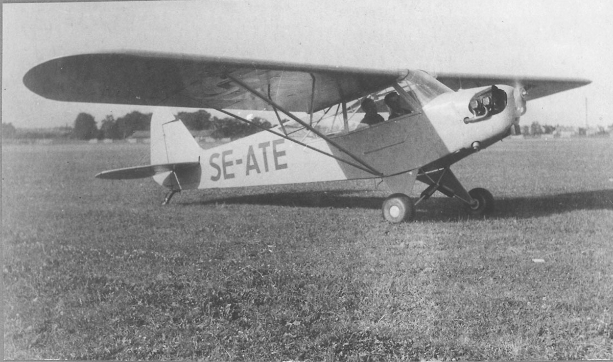 Inflygning på Piper Cub J-3CPåsken 1953 var jag ledig från flygskolan i Ljungbyhed och åkte upp till Örebro för att flyga på min klubb Örebro Bil- och Flygklubb. Där fanns en Piper Cub J-3C, SE-ATE, med en klen motor på 65 hk som jag ville lära mig flyga. Min kompis från både klubben och flygskolan, Blomman kallad, salig i åminnelse, skulle flyga in mig. Han hade 400 timmar Cub redan före Ljungbyhed. Timmarna hade han finansierat genom att landa på åkrar ute i bushen och erbjuda folk flygturer för 5 spänn. Han åtog sig inflygningen. Ingen frågade efter någon behörighet. Jag satte mig på förarplatsen, baksits i J-3C, och Blomman i framsits. Vi körde två landningsvarv. ”Vi tar ett till, för säkerhets skull” sa Blomman, och sedan var jag klar. Jag tyckte nog att det var lite klent, men inte klagar man på en kompis? Dagen därpå tog jag med mig Hans-Bertil Nilsson (känd från Pontiacen) i framsits för lite flygning. Han fick egentligen inte för sina föräldrar, han var bara 15 år. Nu har han över 1700 timmar på J 29 och är kassör i TTT-klubben (Tusen Timmar Tunnan). Vi startade och flög över stan i lätt duggregn. På 300 m tänkte jag testa hur stallen kändes, det hade inte blivit av vid ”inflygningen”. Tomgång, sänkt fart, lite luddig och snäll stall. På med gasen igen. Inget händer! Propellern står still! Det här var ett flygplan utan startmotor som startades med propellersving, men jag kände ingen oro. I Sk 25 fick man ofta motorstopp vid avancerad flygning, men det var bara att dyka igång. Så icke nu. Jag dök, men propellern rörde sig inte. Från 300 m över en stor stad kan man inte dyka så länge, man måste hitta en landningsplats! Stortorget eller Järntorget? Inget såg bra ut med bilar och lyktstolpar. Men så såg jag en möjlighet att nå en åkerflik som stack in mot stan från väster, från Längbrohållet. ”Nu slår vi ihjäl oss”, skrek Hasse. ”Lugn, bara lugn”, svarade jag så lugnt jag kunde (utan att ana att jag förutspådde titeln på en poesibok av Kristina Lugn). Med vingglidning och tur landade vi på åkern utan att slå runt i leran. Folk kom springande från en väg i närheten. Jag klev ur och sjönk ner till fotknölarna, men fick snurr på propellern. In i flygplanet igen, på med gas och med lerkokorna smattrande mot bakkroppen körde jag till bortre änden av åkern, vände och drog på innan de nyfikna hann ifatt. Det gick tungt. Snart kom ett dike, men farten räckte för att hoppa över. Sedan kom en högspänningsledning, den flög jag under (det fanns inget att välja på!). Sedan en allé, men nu hade jag nått stigfart. Puuh! Vi flög runt en stund så att de värsta lerkokorna skulle blåsa bort innan landningen på flygfältet. ”Varför använde du inte förvärmningen?” frågade Blomman. ”Finns det en sån?” blev min motfråga. (Den hade inte använts vid ”inflygningen”). Jag hade ingen vana från FV att använda förvärmning. På Sk 25 fanns ingen varmluft, där värmdes förgasaren av avgasröret (radmotor). Sk 16 hade förvärmning, men den användes bara vid lång plané med isbildningsrisk. Vid landning skulle förvärmningen alltid vara i läge Cold enligt SFI (förarinstruktionen). Man kan säga att jag lärde mig något av inflygningen på Cub. Trots Blomman.