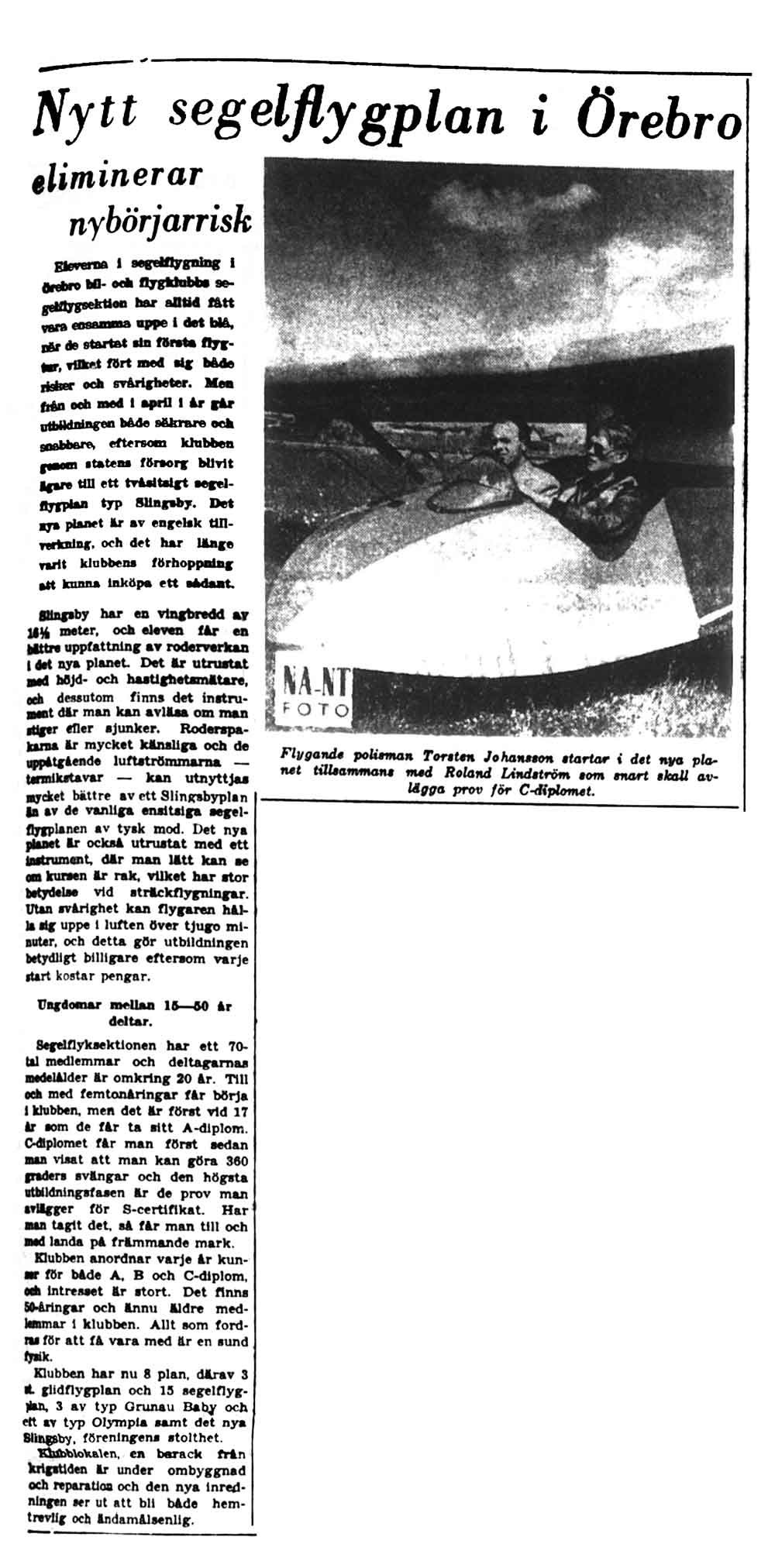 Årets segelflygutbildning har just startat   [ sid 1 ]NA-NT hjälper klubben med en liten notis på förstasidan om segelflygutbildningen. |