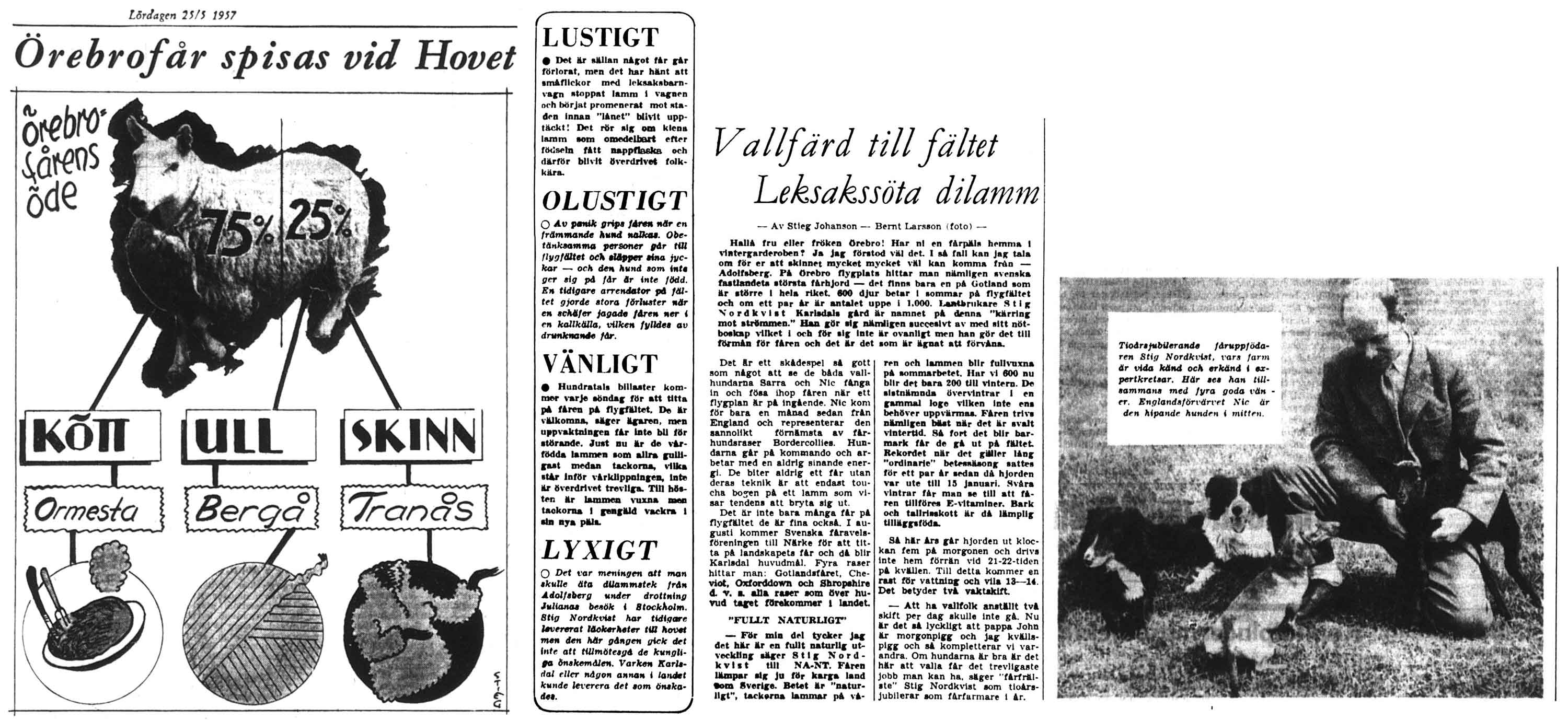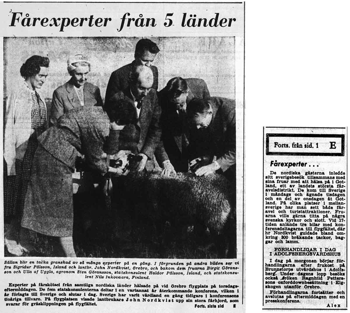 Nordiska fårexperter besöker Gustavsvik   [ sid 1, 18 ]Experter från alla nordiska länder besökte flygfältets fårskötare John Nordkvist och hans omkring 300 får. |