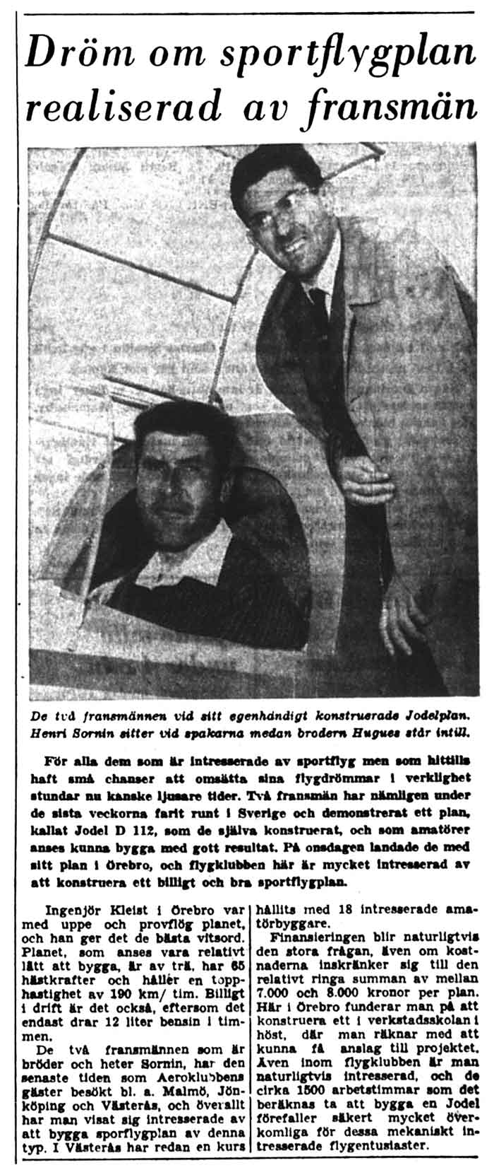 Jodels konstruktörer demonstrerar sitt plan på Gustavsvik   [ sid 9 ]Ingenjör Kleist i klubben visar intresse för den nya Jodel D 112 som man kan bygga själv. |