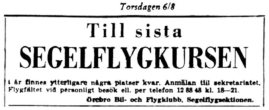 Annons för årets sista segelflygkurs   [ sid 2 ]Några platser kvar. |
