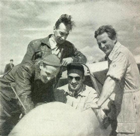 Irve Silesmo från Örebro är med i kullen om 8 elever på Vinninga utanför Lidköping som utbildas till DK-instruktörer. (DK är dubbelkommando. Planet rymmer två. Då kan läraren vara med under flygningen.) Kursen leds av Ållebergchefen Lennart Ståhlfors, assisterad av Karl Göran Klevstigh. Det svenska segelflyget börjar nu få en bra uppsättning DK-instruktörer och allt fler klubbar håller på att gå över till DK-skolning. På Ålleberg skolas det numera uteslutande i DK. |