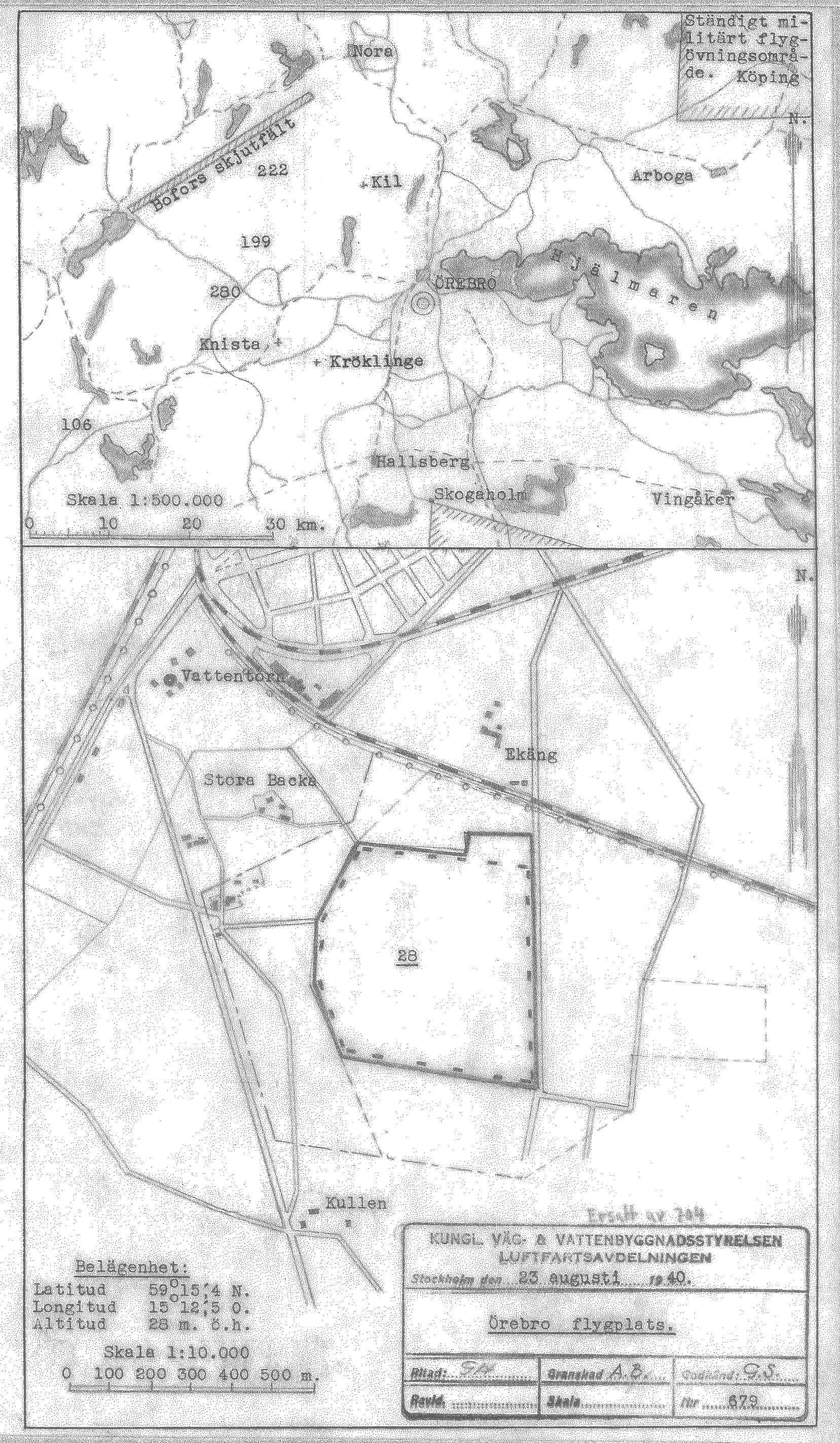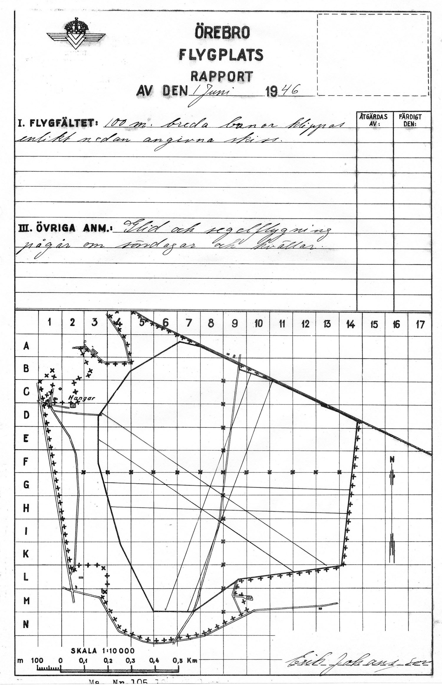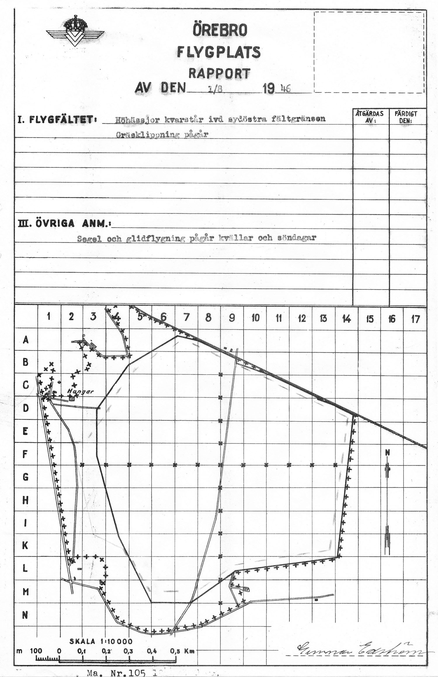 Gustavsviksfältet, flygplatsrapport på ny karta från LFS   [ karta ]Första rapporten på LFS flygfältskarta från 1946. Via Örebro Stadsarkiv. |