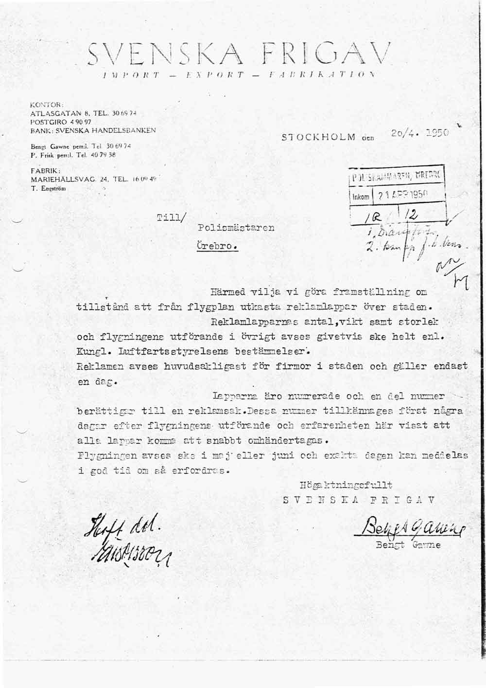 Flygblad över Örebro – "Svenska Frigav" ber polisen om tillstånd   [ sid 1 ] |