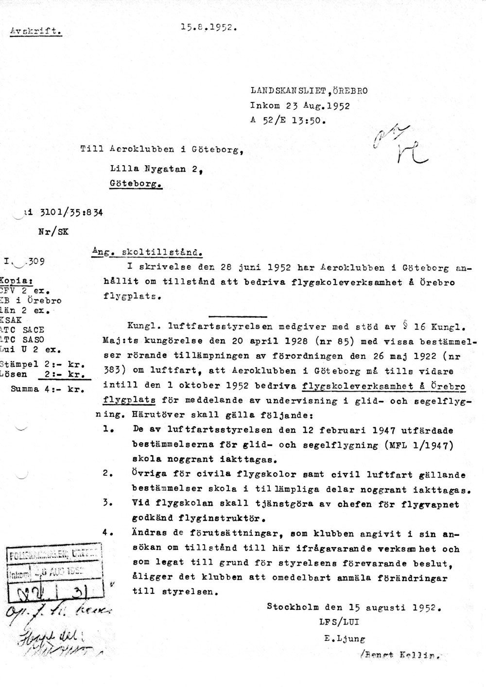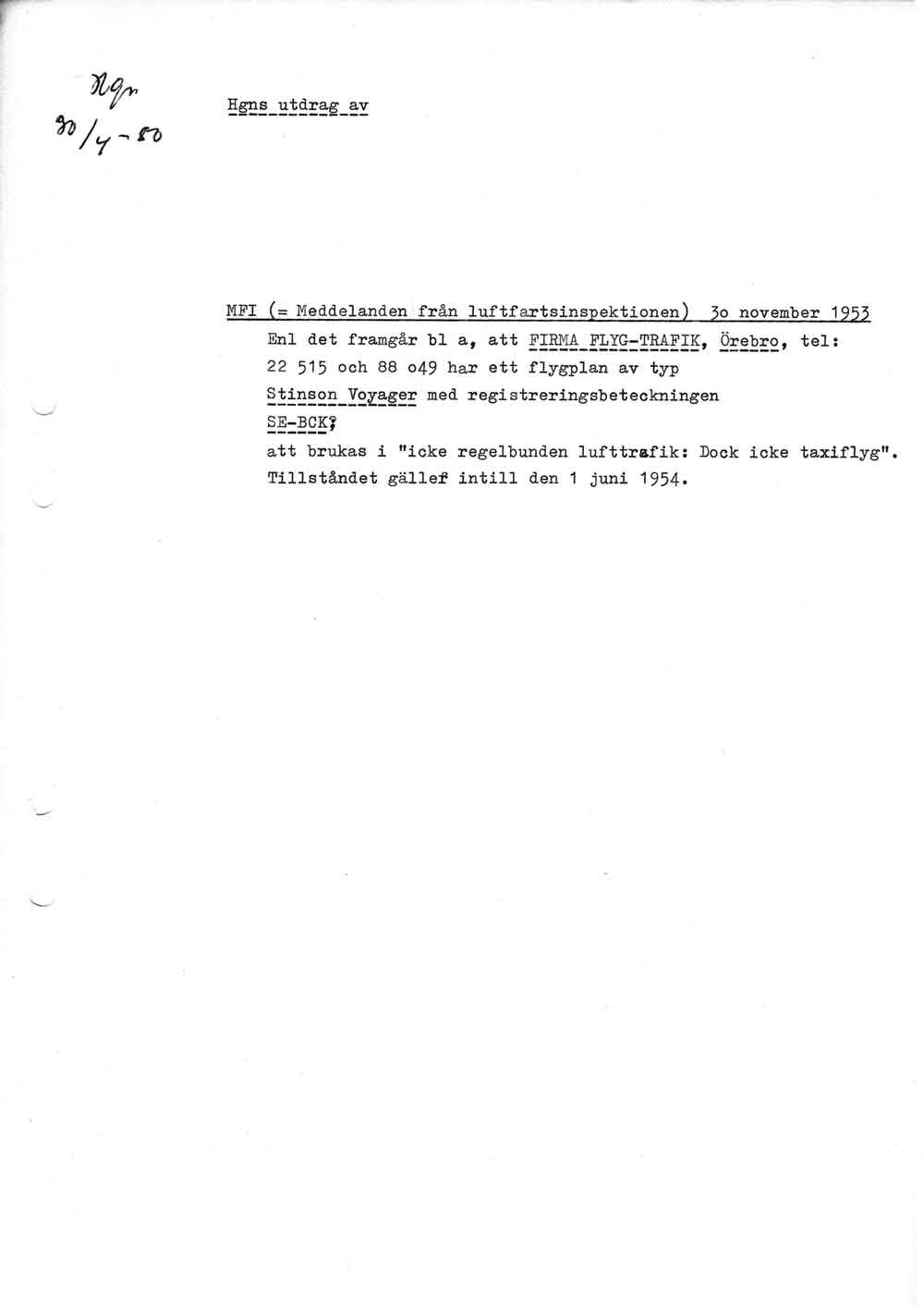 Tenglers trafiktillstånd – Hgn:s avskrift av meddelande från LFI   [ sid 1 ] |