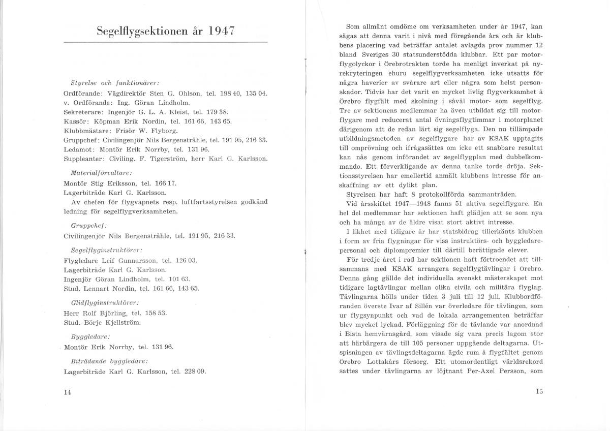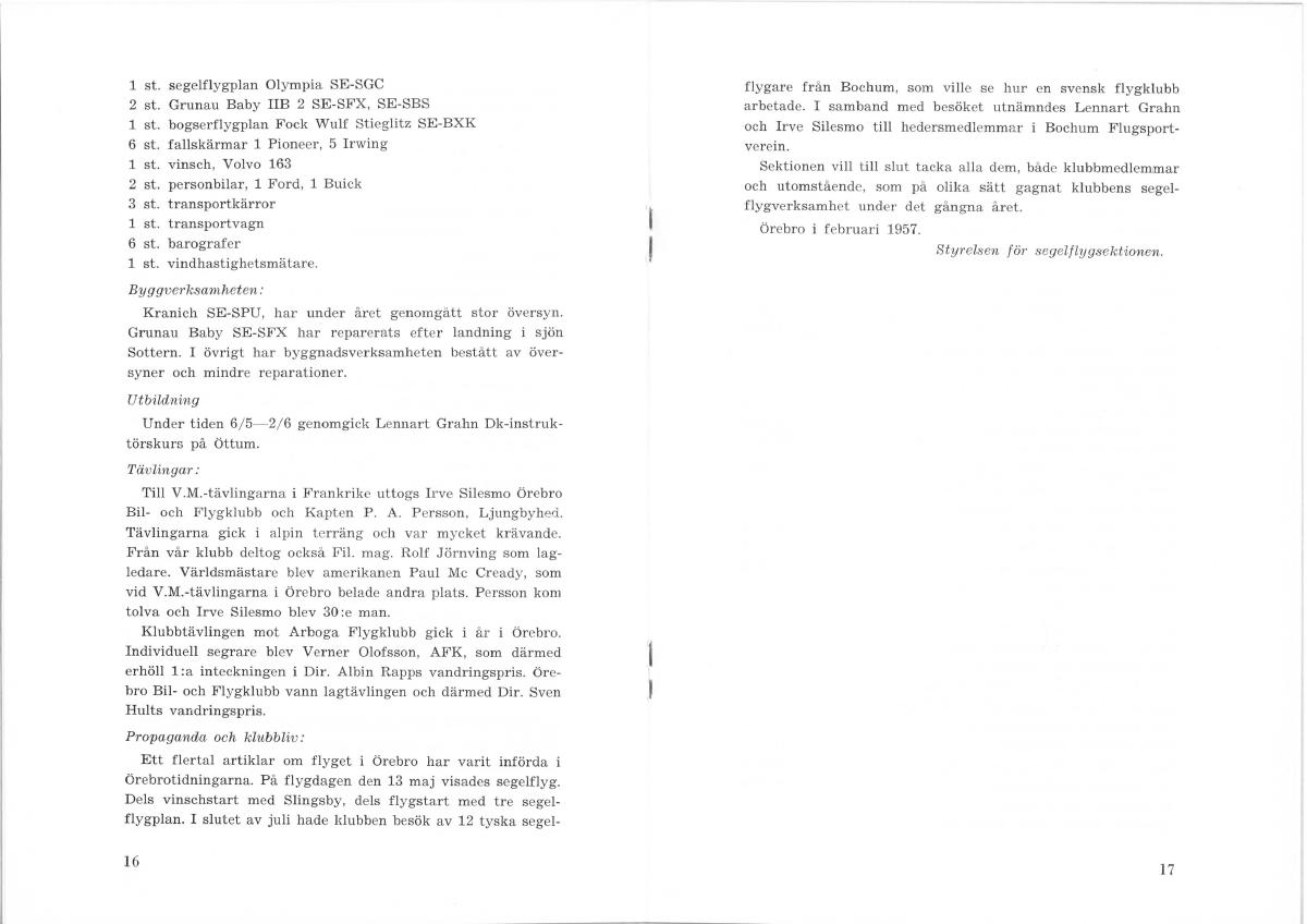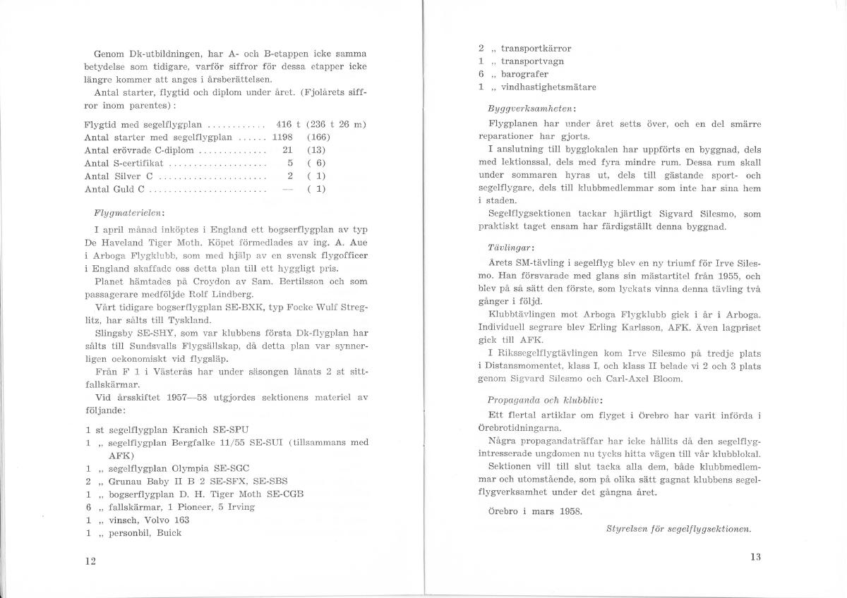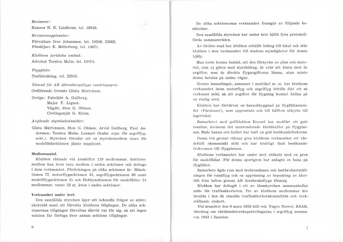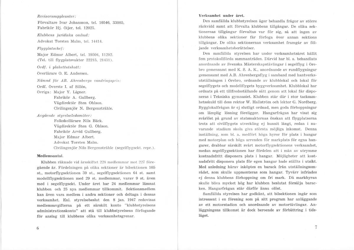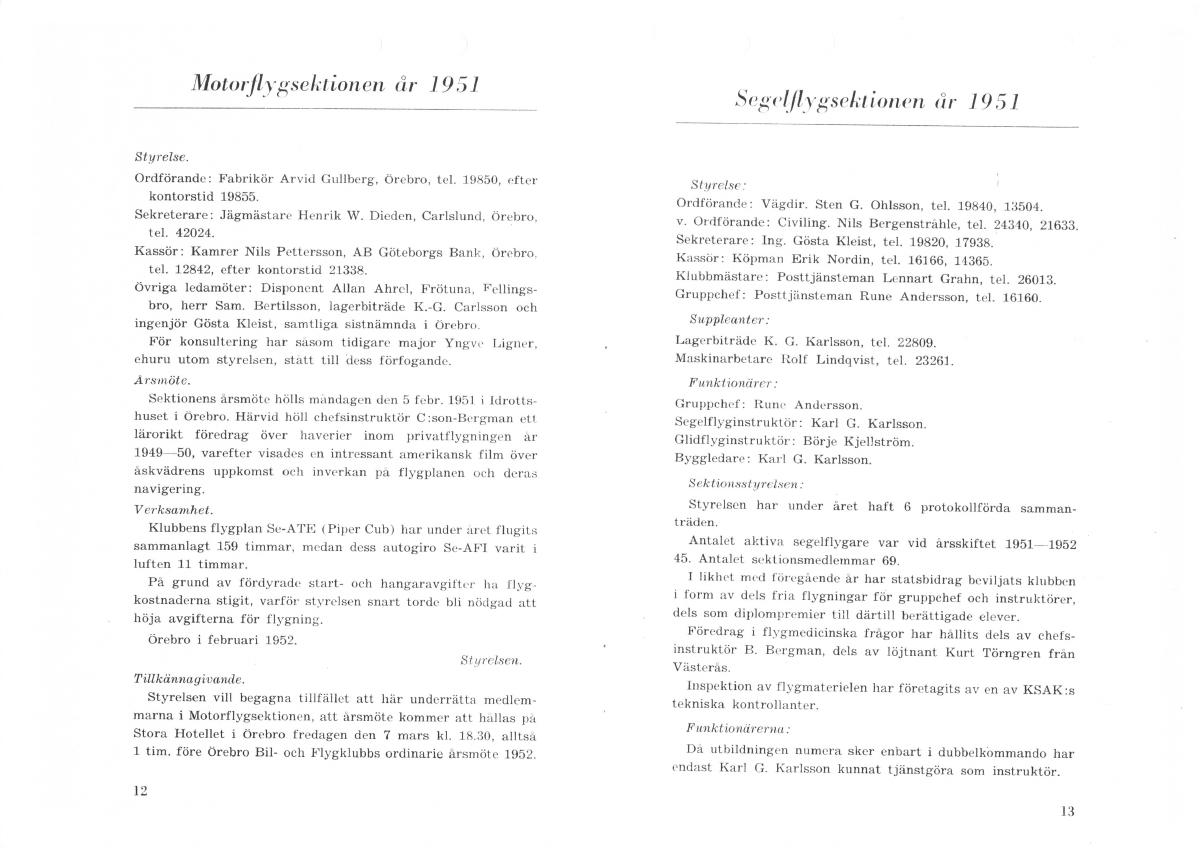 Motorflygsektionen s 12;   Segelflygsektionen s 13... |