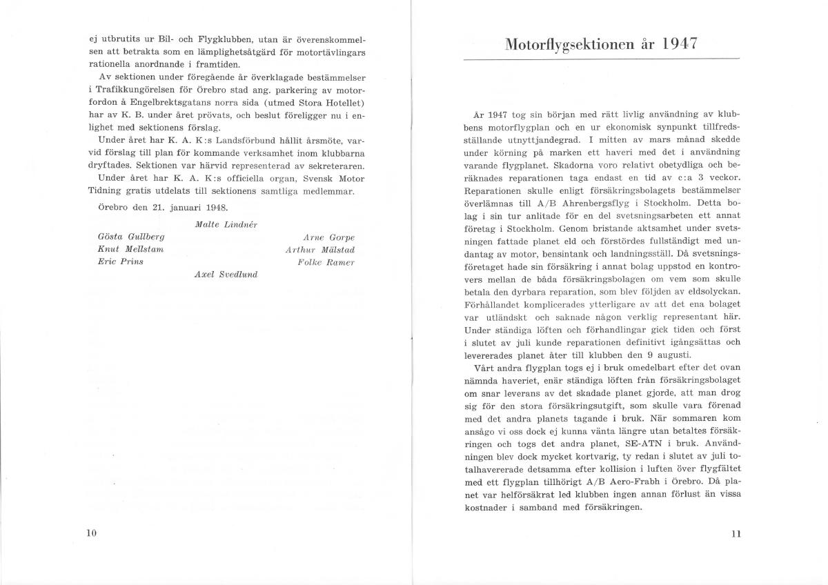Motorflygsektionen s 10;   Segelflygsektionen s 11... |