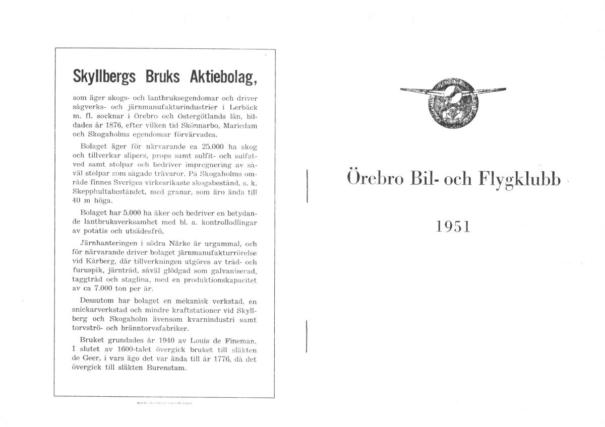 | 2016-12-21 | Verksamhetsberättelse 1950 tillhandahållen av SFF Örebro och publicerad här. |