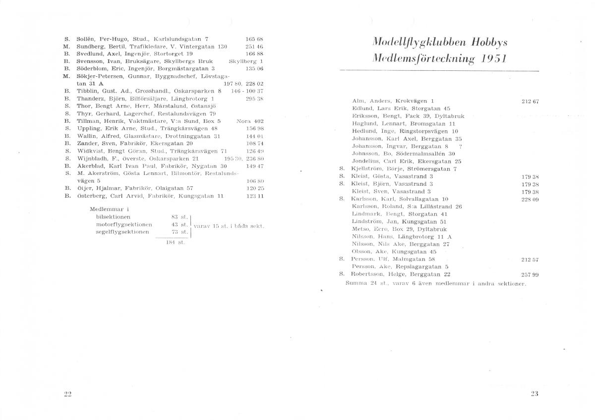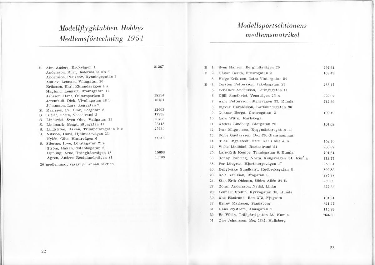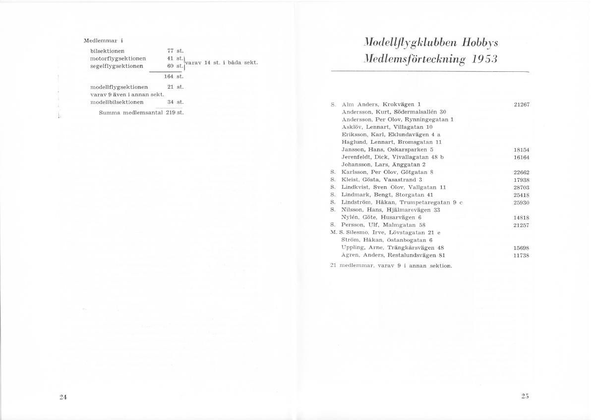 Medlemmar Hobby s 22;   Medlemmar Modellbilsektionen s 23 |