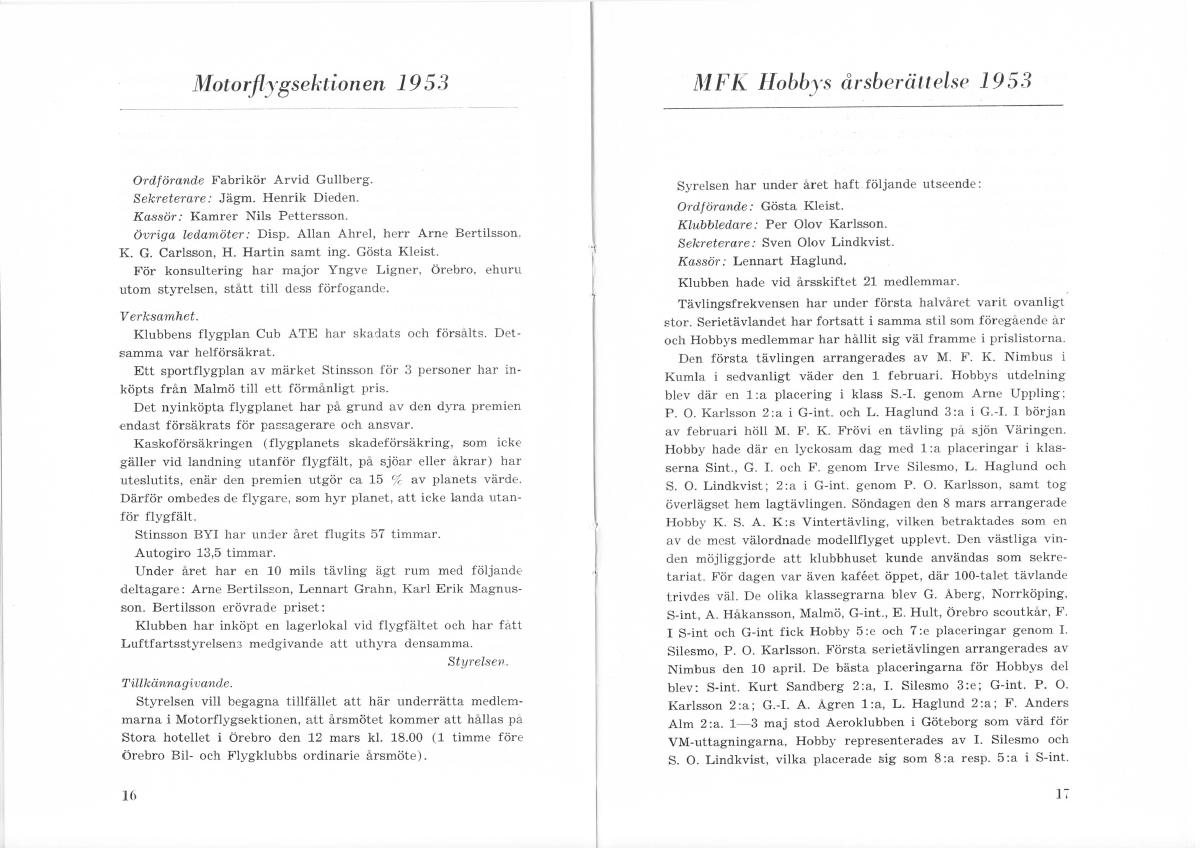 Motorflygsektionen s 16;   Modellklubben Hobby s 17... |