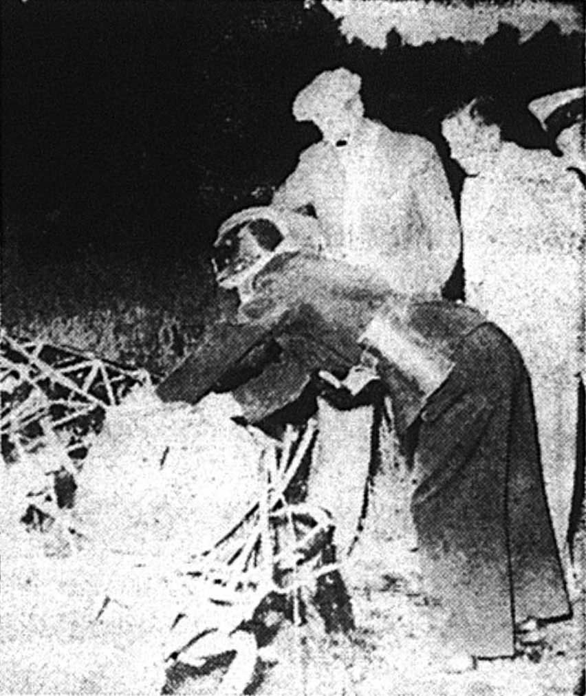 Andersson genomgick tidigare en segelflygkurs och hade också hunnit få fyra timmar motorflygutbildning. Nu gjorde han ett skolflygpass i Cuben och planet befann sig ungefär vid Rosängens handelsträdgård någon km söder om flygfältet med kurs österut. Då kom Austern från fältet med rakt sydlig kurs. Iakttagare till olyckan hade fått intrycket att Austern flög mot Cuben med avsikt, liksom för att signalera. Austern steg för att undvika kollisionen och passerade strax ovanför Cuben. Men den nedsänkta vänstra vingen skar av Cubens stjärtparti. Cuben gjorde då en volt och störtade sedan med avslitna roderlinor. Den slog ner i en havreåker ungefär 200 m öster om Rosängens handelsträdgård. Ögonvittnet Bror Ek berättar att Austern flög in mot Cuben och snuddade med vingen vid dess höjdroder. Då gick Cuben omedelbart i spin och störtade rakt mot marken. Sedan såg han lågor slå upp från planet. Trots att brandkåren var snabbt på plats kunde de inte göra mycket. Allt som var kvar av planet var några förvridna metallrester och två sönderbrända kroppar. På flygplatsen betonar man att Nilsson var en mycket duktig pilot och flyglärare med militär utbildning och lång erfarenhet. En polisutredning pågår, men hr Bergman har inte kunnat höras under kvällen. Han hade kört från flygplatsen i bil direkt efter olyckan. (Originalartikeln var osignerad) |