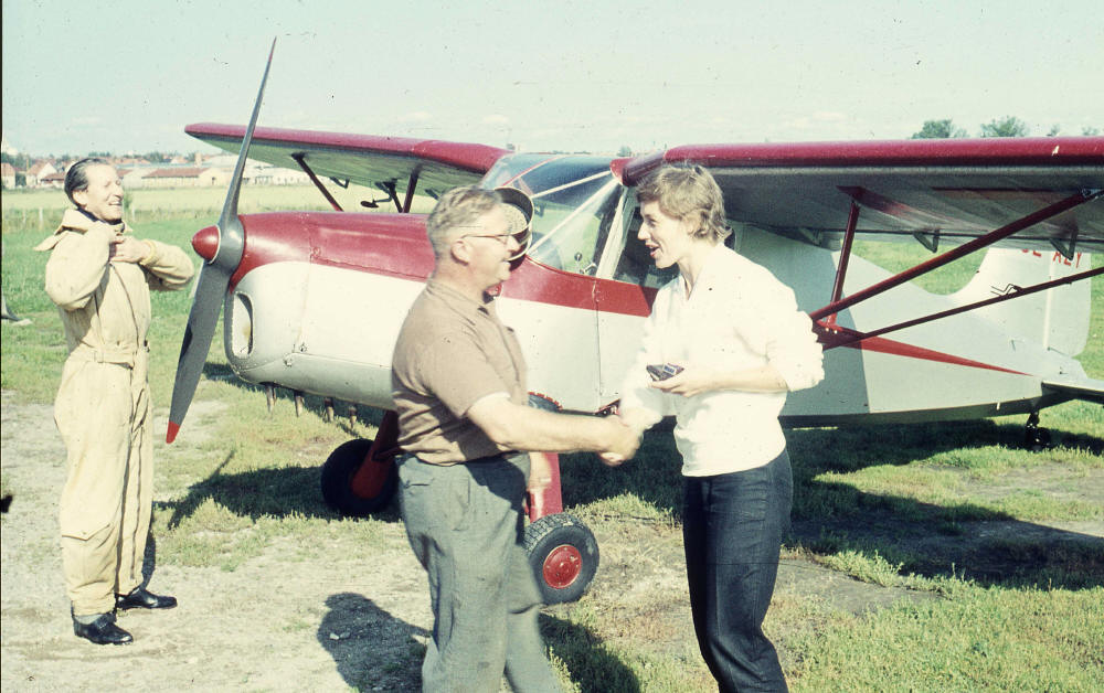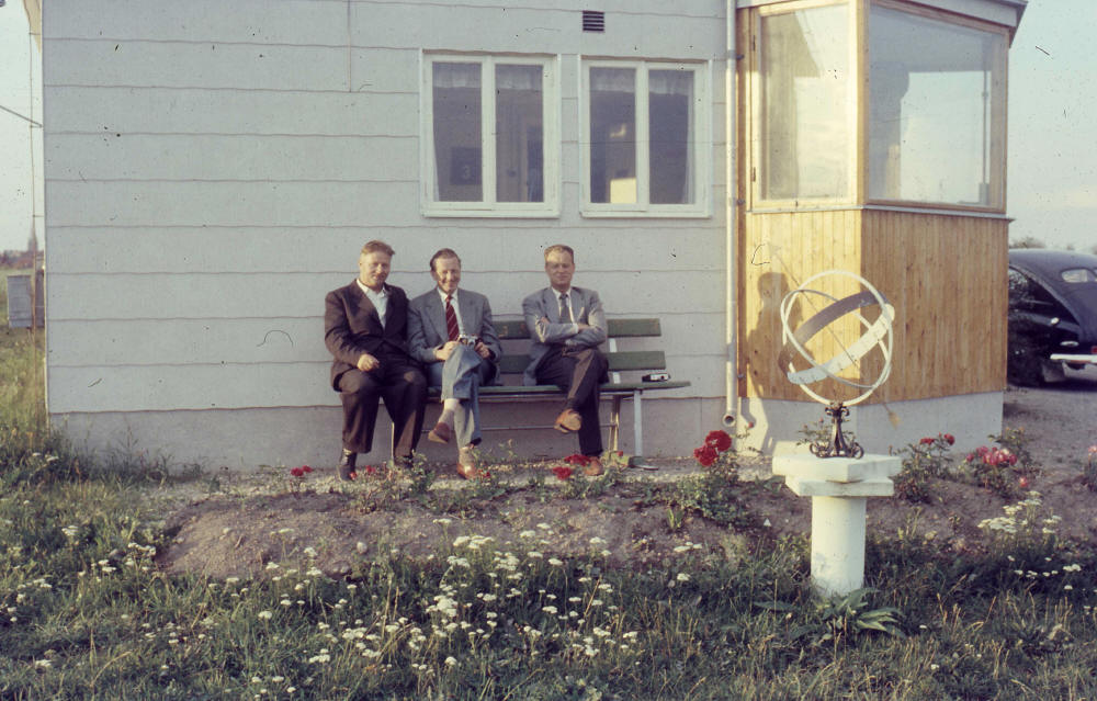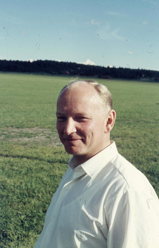 Rolf Broberg: Karl-Gunnar Karlsson, förr kallad Brödkalle. Han var segelflyglärare i början på 1950-talet. På 1960-talet var han motorflygchef. Fotot bör vara taget strax utanför serveringen eller plattan med eftermiddagssol från väster. |