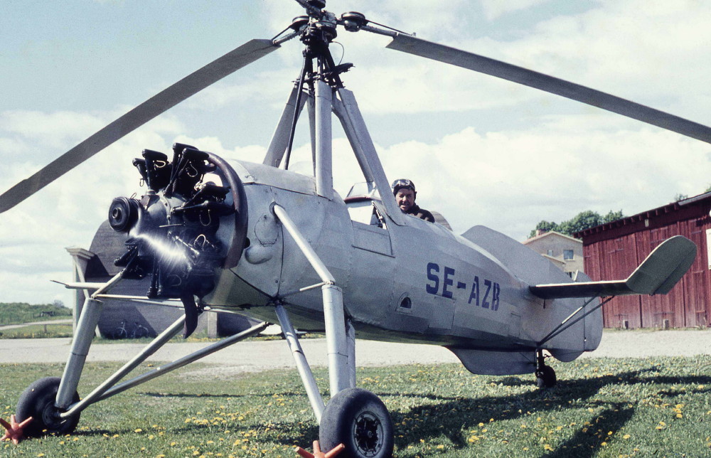 Rolf Broberg: Arvid Gullberg i sin, eller egentligen flygklubbens autogiro SE-AZB. |